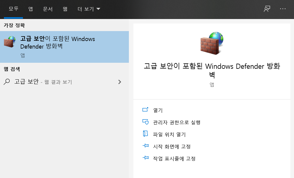 5. 고급 보안이 포함된 Windows Defender 방화벽