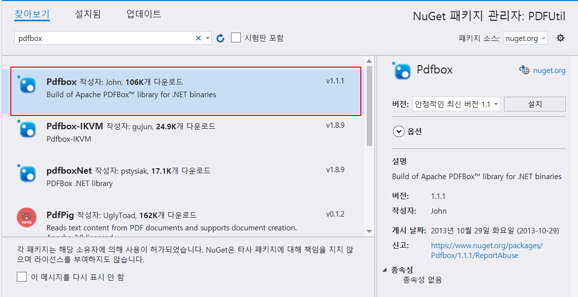 c#에서 원본 PDF를 1장씩 잘라서 저장하는 기능을 확인 해 보자 라이브러리가 필요한데 무료이면서 한글을 잘 지원하는 것을 선택하다 보니 Pdfbox가 적합하였다. 사실 pdfbox는 java 계열의 Apache 라이브러리다. 이것을 .net으로 변경한 것으로 보인다.