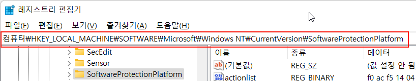 레지스트리 편집기를 엽니다. (CMD에서 regedit를 실행)