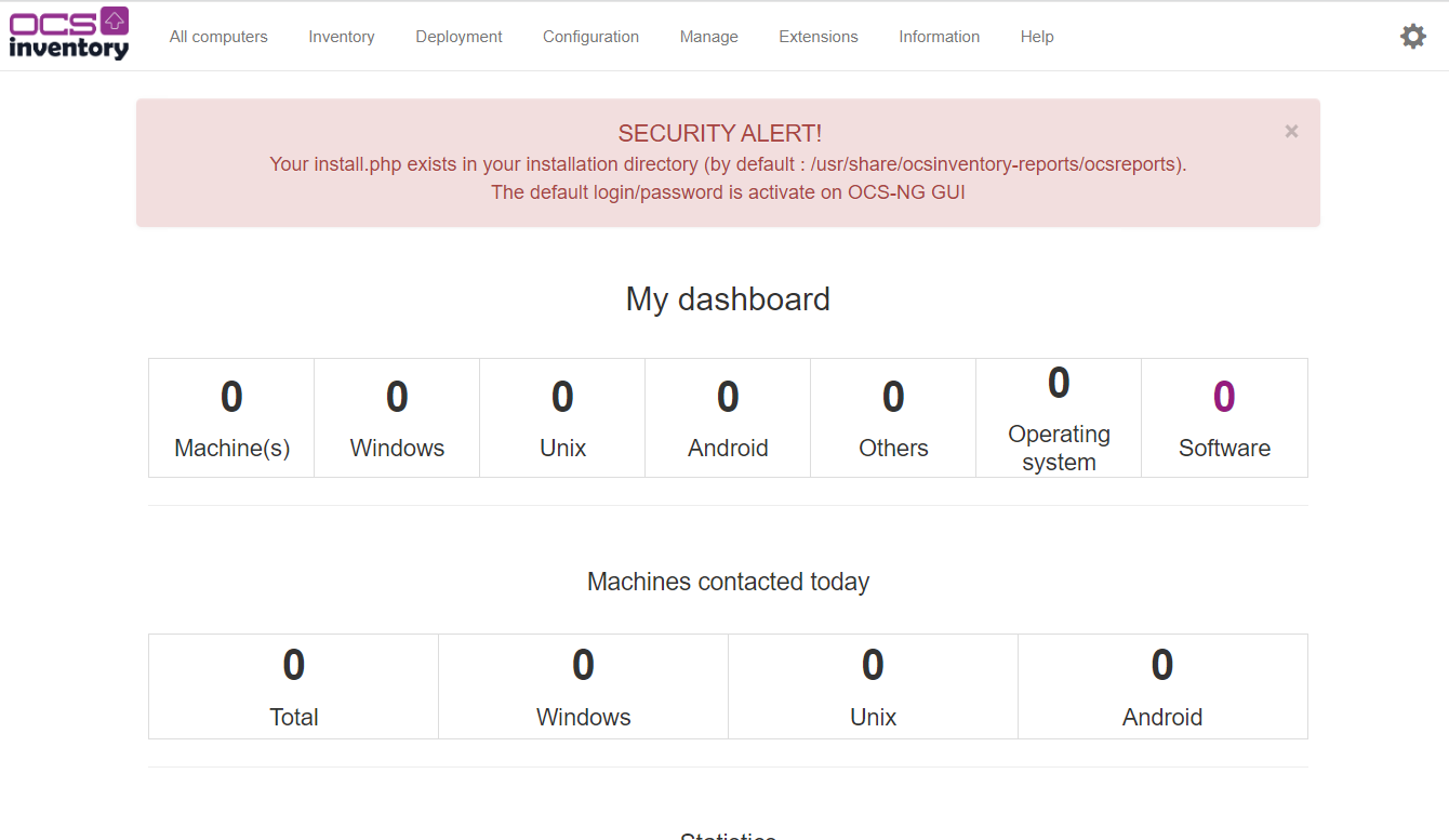 - http://IP/ocsreports/index.php 로 접속 (초기 ID : admin, 초기 패스워드 admin)