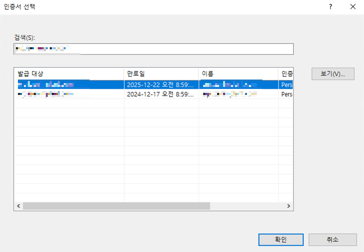 4. 인증서 파일 가져오기 ▶확인 클릭