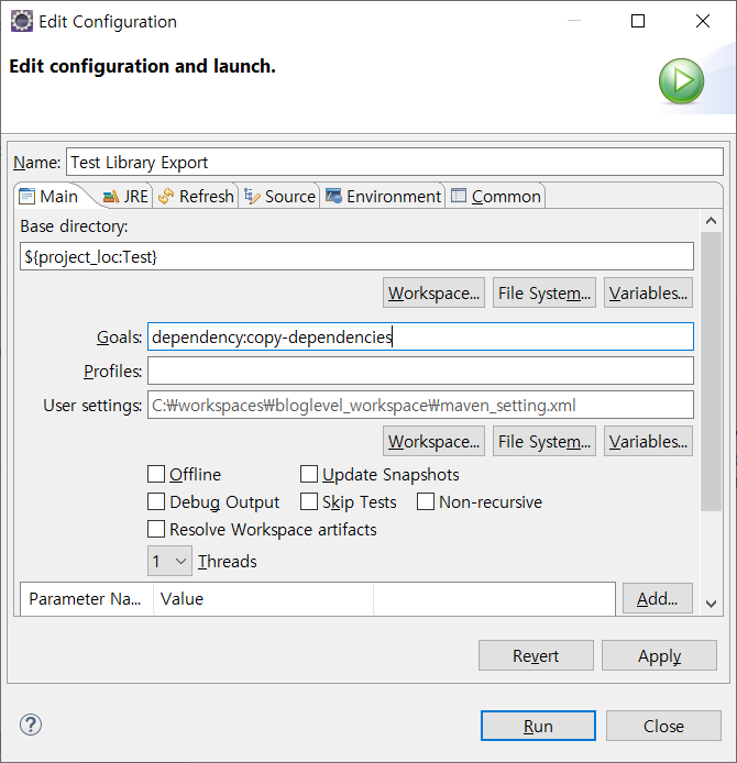 2. Goals 에 dependency:copy-dependencies 입력