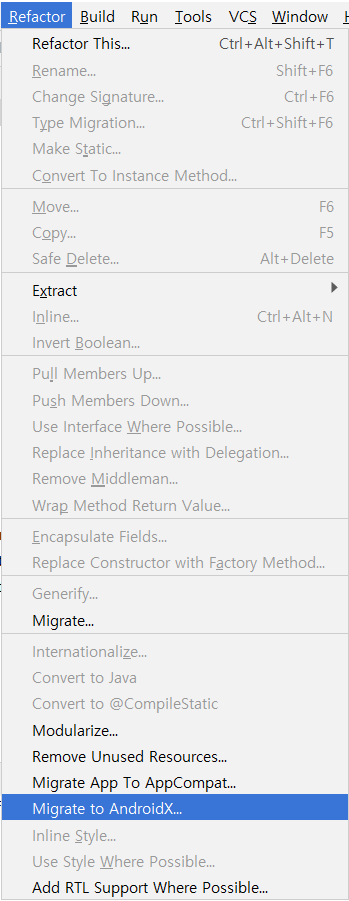 어느 순간 Android 를 빌드하는데 androidx 패키지 변경으로 인하여 오류가 발생하였다. 그럼 이제 androidx 로 변경해서 빌드해보자